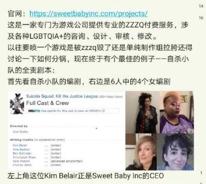 最近NGA有一個熱帖,講述一個名爲Sweetbaby的公司如何利用幫一款遊戲變得更ZZZQ而賺錢。他們的客戶包括前兩天被罵瘋了的《自殺小隊 消滅正義聯盟》,以及三個月前大受好評的《心靈殺手2 ALAN WAKE II》。