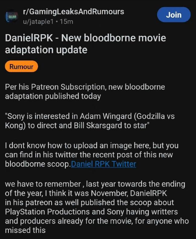 Daniel Richtman 唸叨血源電影有段時間了,現在越描越真,就等官方消息了。