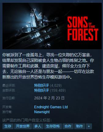 多人“恐怖”生存遊戲《Sons Of The Forest(森林之子)》在昨天結束了EA,正式推出了1.0版本。