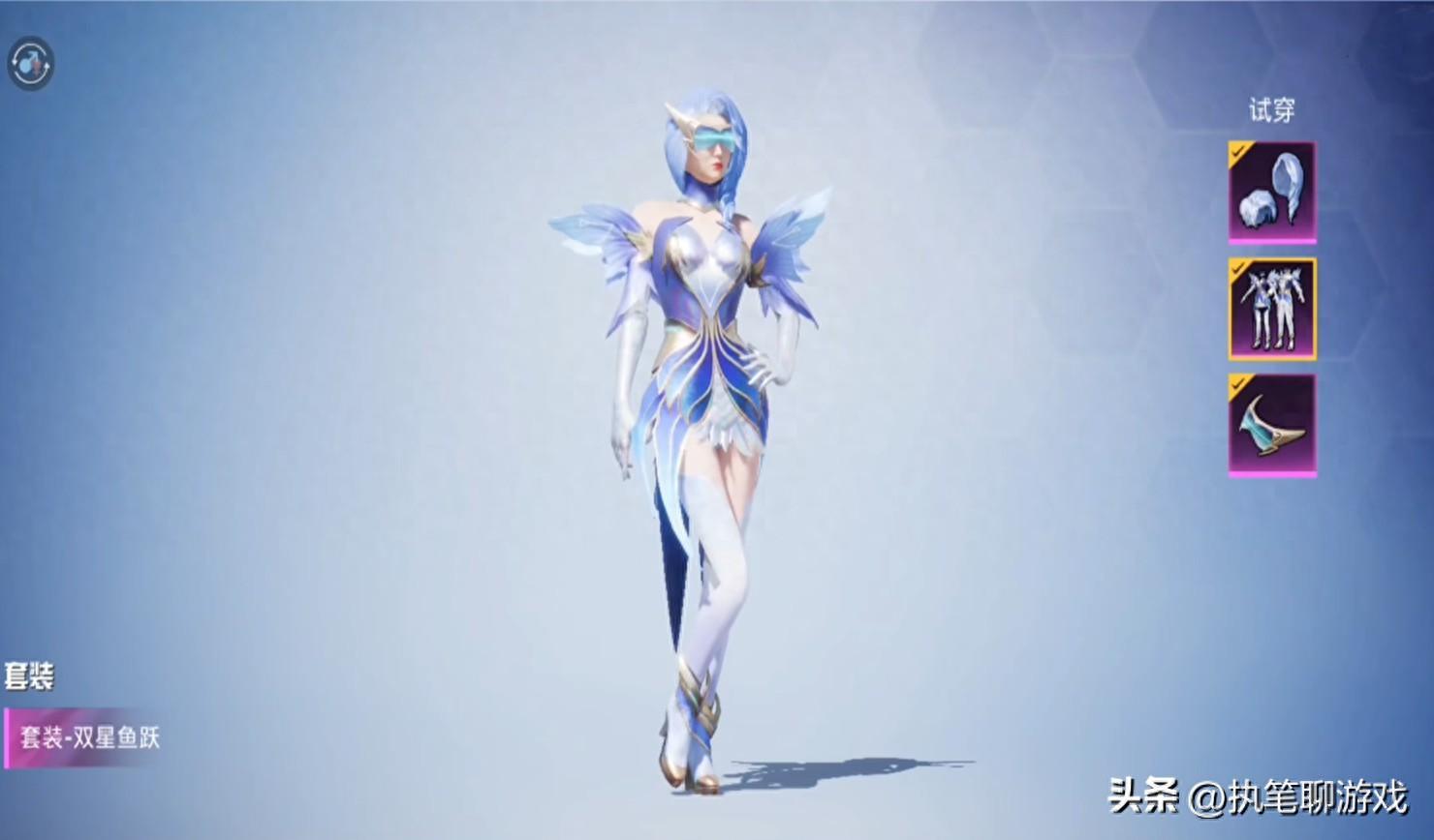 首先我們來看“雙星魚躍”,粉色等級三件套,可以DIY搭配,這套衣服其實有些海洋風格,在遊戲中也算是司空常見的類型吧。
