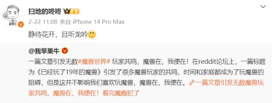 近日,部分魔獸大V都開始發佈了一些懷念《魔獸世界》的消息,這也惹來了前網之易負責人張棟的關注,留下了一句:“靜待花開,且聽龍吟”。