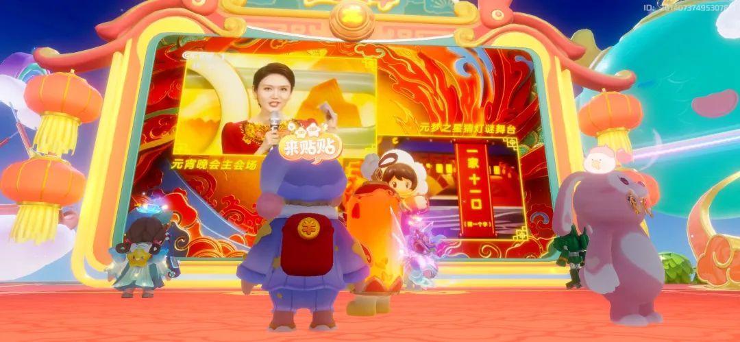 “接下來歡迎大家走進《元夢之星》,大家可通過正版閤家歡派對APP元夢之星或微信QQ元夢之星小程序,看晚會直播,一起參與猜燈謎活動。還能得永久時裝‘花燈燈’!”