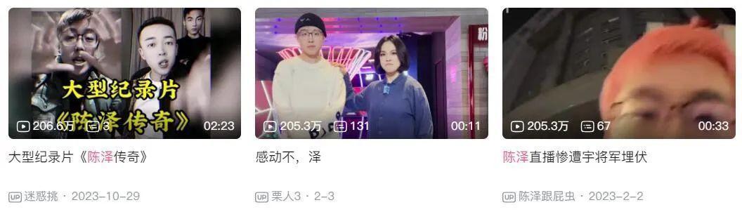 客觀來說,陳澤“小手一指rap開始”,和宇將軍對罵的直播內容,帶有濃厚的快手土味特質,非常上不了檯面,但陳澤全程把宇將軍當傻子逗的場景,讓圈外人看得也樂呵。這些直播片段同樣在抖音、B站上爆火,將陳澤徹底推向全網。
