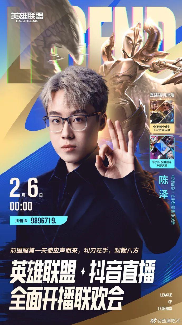 2月5日,在全面開放LOL直播前,英雄聯盟官方抖音找到了,千萬粉絲的大主播陳澤“代播”——說是代播,其實就站臺衝一波熱度,給其他LOL主播打個樣,能在這種標誌性時刻成爲聚光燈的焦點,可謂排面拉滿。