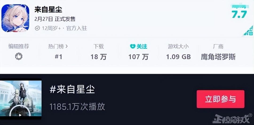 截至小弟寫稿遊戲平臺評分7.7,單一平臺下載量達到了18萬次,總熱門榜位居第一,超過了《蛋仔派對》《崩壞:星穹鐵道》等熱門遊戲,短視頻平臺相關話題視頻播放量高達1185萬次。