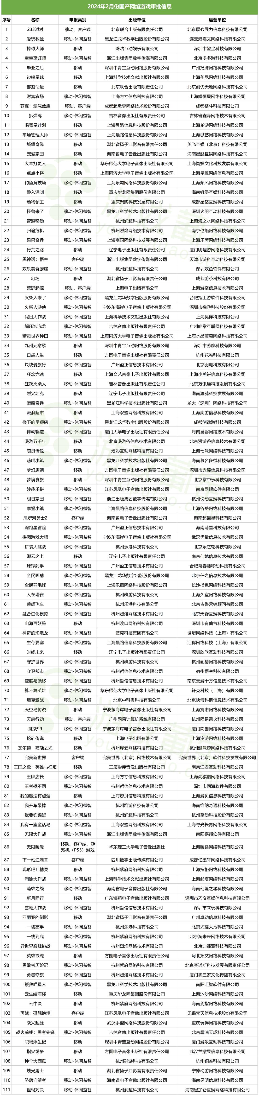 2月27日,國家新聞出版署公佈了2024年2月份國產網絡遊戲審批信息,這批版號共有111款遊戲過審(文末附有完整名單),在去年12月的105款、今年1月的115款之後,這依然是一個相當可觀的數量。