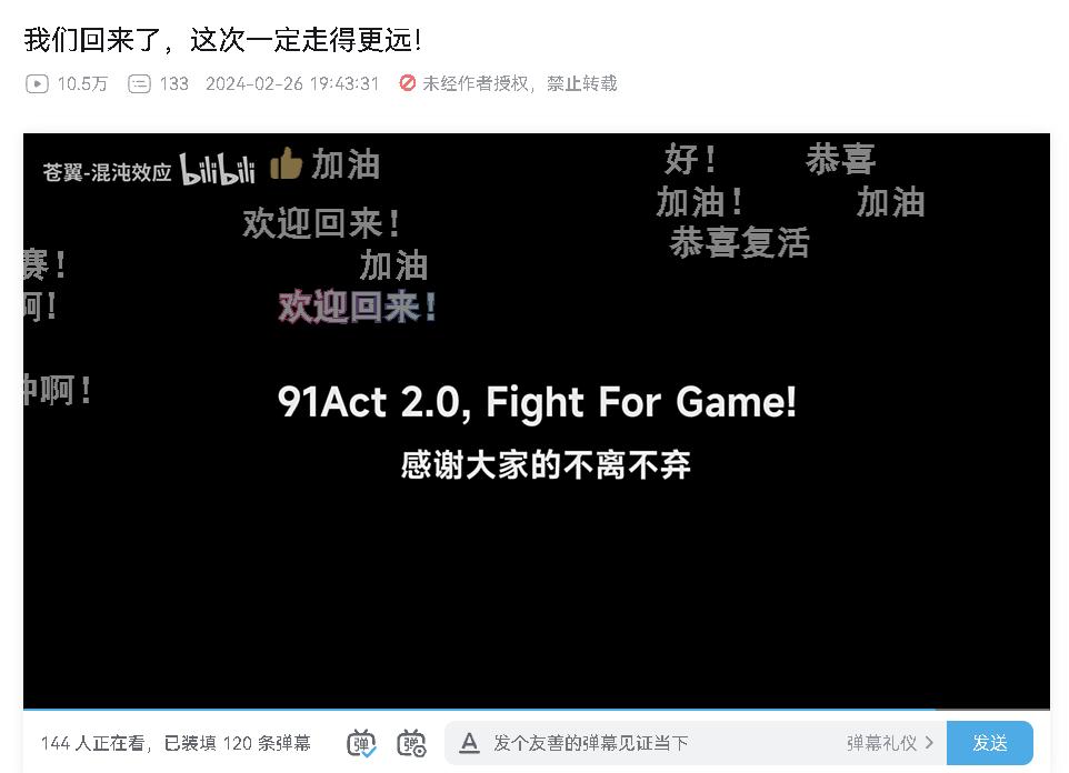 而91ACT本來已經傳出團隊解散的消息,但就在昨天,《蒼翼:混沌效應》的官方賬號剛剛發佈了一條視頻宣佈迴歸,今天產品又拿到了版號,也算是一件喜事了。