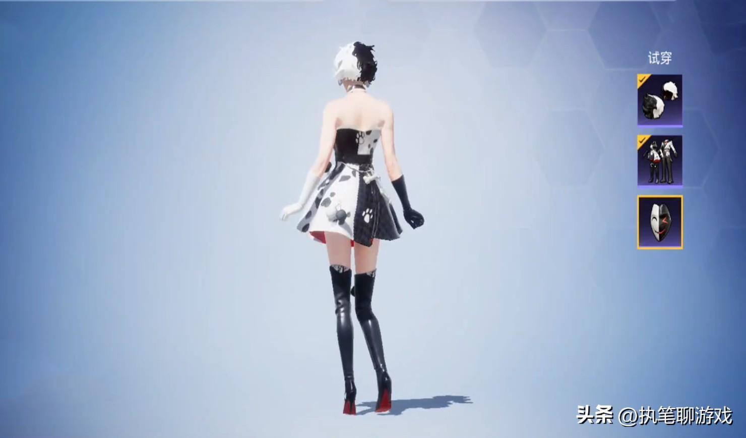 好在這個“面罩”可以DIY拆分,所以如果不喜歡的玩家還可以自己搭配,正面看起來較爲普通,背面則算是中規中矩,畢竟這種風格的連衣裙在《和平精英》裏堪稱比比皆是,早就有太多類似的“壓箱底”了。