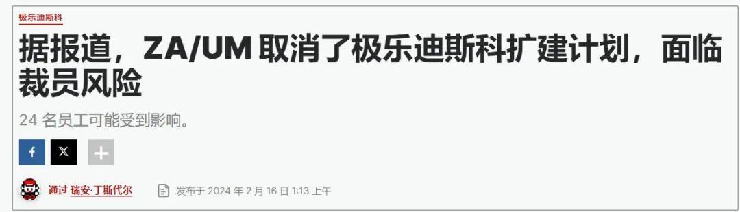 最近,《極樂迪斯科》的開發商ZA/UM裁掉了24名員工,這超過了公司1/4的職員數,並且一個叫做X7的項目也被取消,這原本是《極樂迪斯科》的DLC。在此之前,一個原定於類似《極樂迪斯科》風格的科幻項目,亦在2022年被砍。