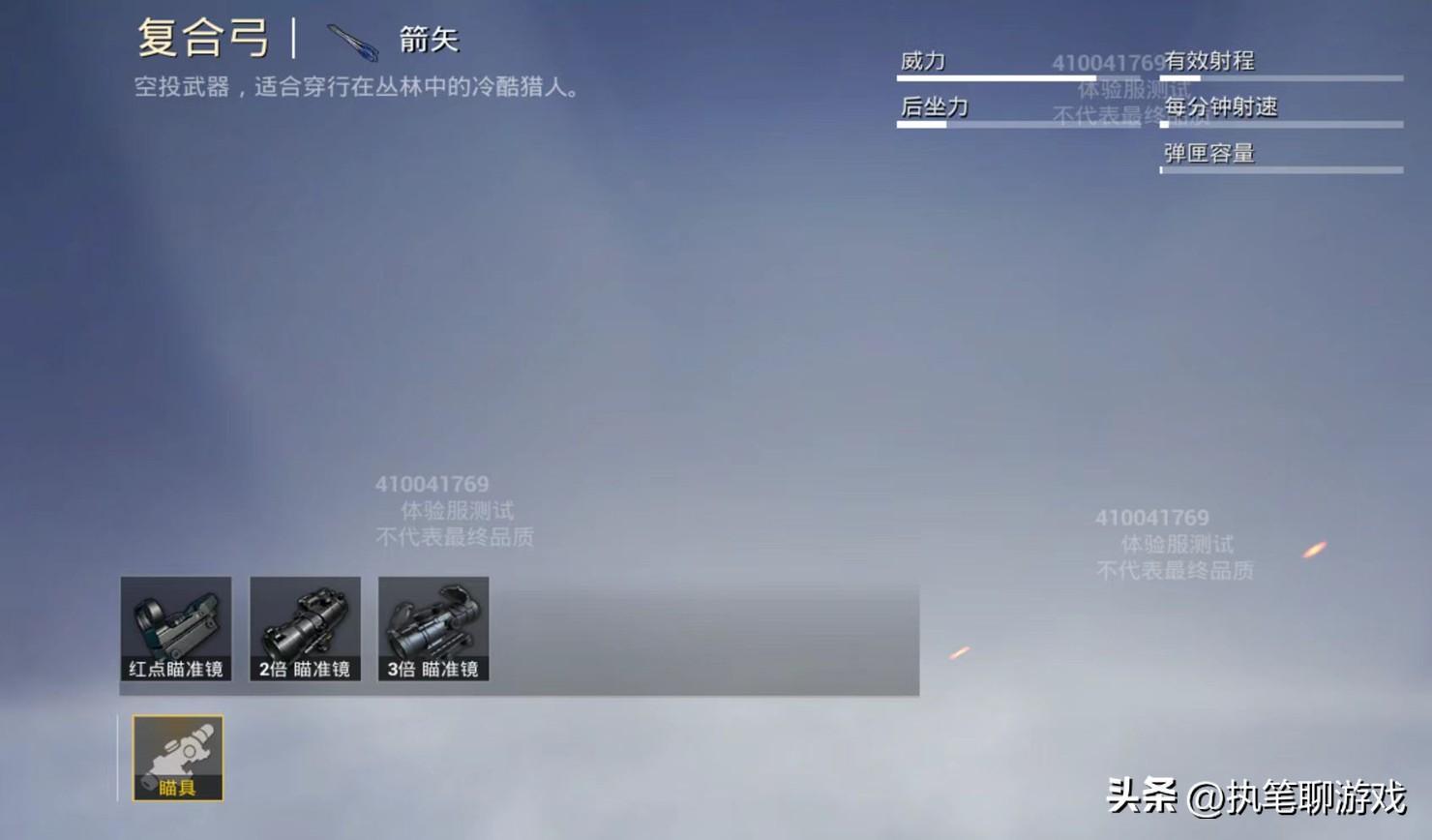 首先是空投武器新增的“複合弓”,或許是時間比較倉促,雖然在遊戲中已經顯示,但是卻只有UI名稱,連具體的建模都還沒有完成製作,所以我們暫時只能看到“空白建模”。