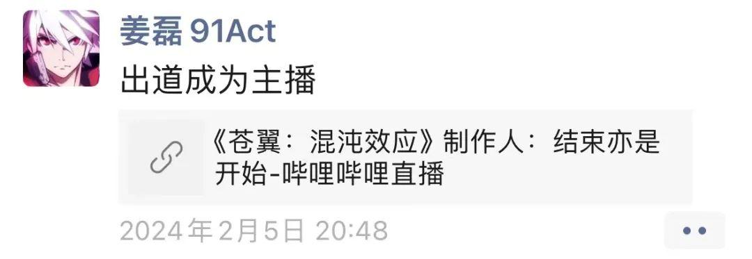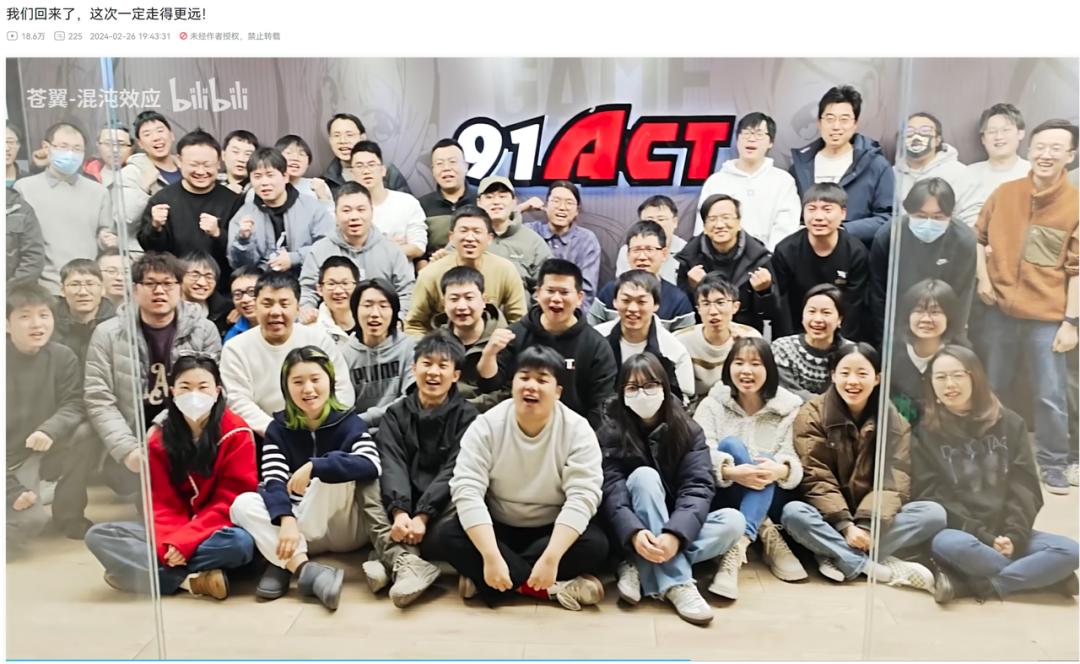 於是,2月26日,姜磊召回了部分願意迴歸的《蒼翼:混沌效應》老員工,在B站宣佈了91Act 2.0的消息。
