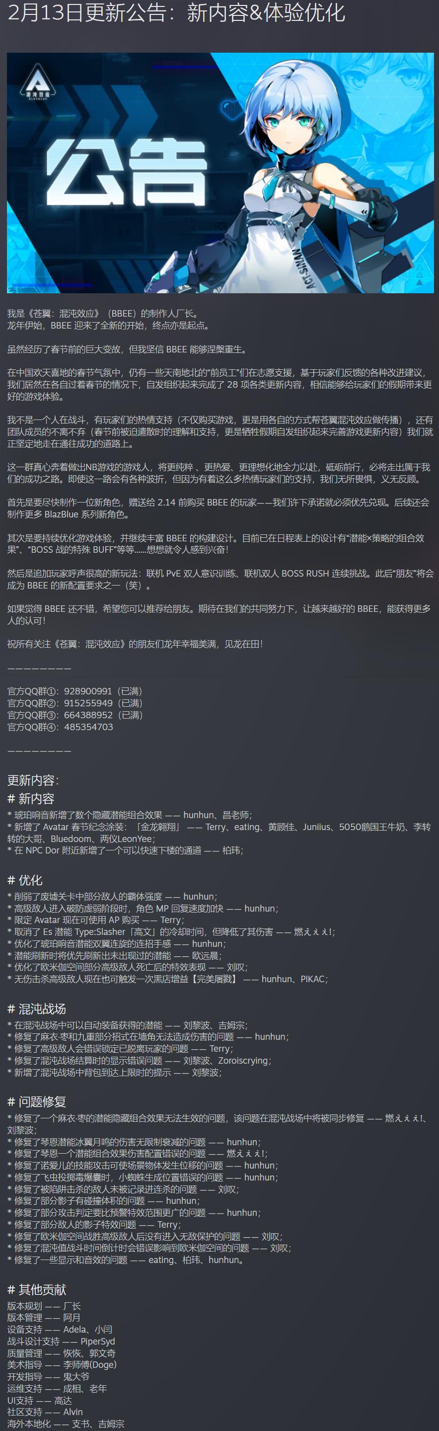 2月26日,《蒼翼:混沌效應》發佈了一則視頻,標題是:《我們回來了,這次一定走得更遠!》。