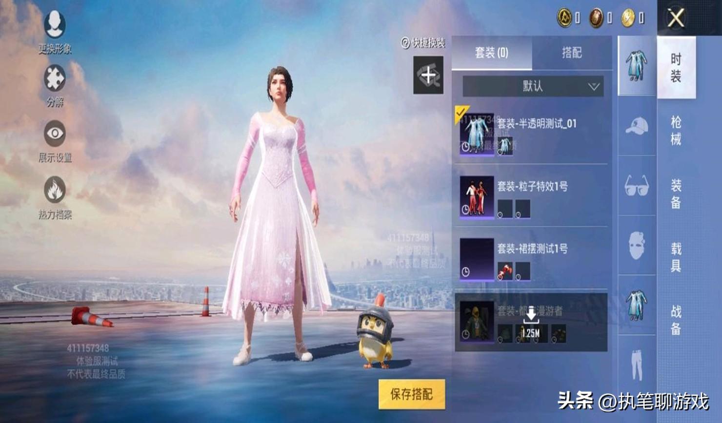 如圖所示,此次體驗服送給玩家的3套衣服,分別被命名爲半透明測試、粒子特效1號、裙襬測試1號。