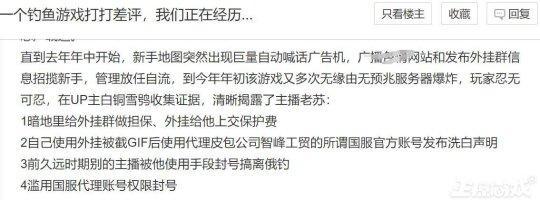 因爲遊戲可以通過釣魚獲利,因此遊戲火了後國內就出現了大量的開掛工作室,導致遊戲烏煙瘴氣,但是國區沒有管理者,國區玩家想提意見都找不到人。