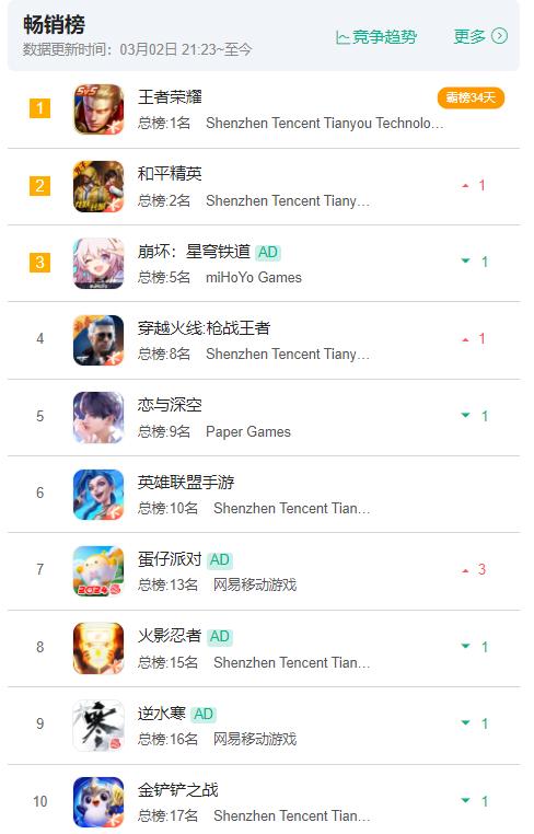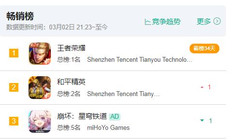 只可惜就差一步,崩鐵差一點就重新回到王座了。