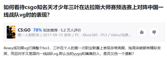 2019年12月,LVG在WESG中國區決賽上擊敗了國內CS老大哥TyLoo,引起了不小的轟動。事實上,自帶流量的三葉,參加任何比賽都會有紅黑兩方的爭論。而當旁觀者審視他的視角,從高分路人變成職業選手時,評價的標準自然也會提高。