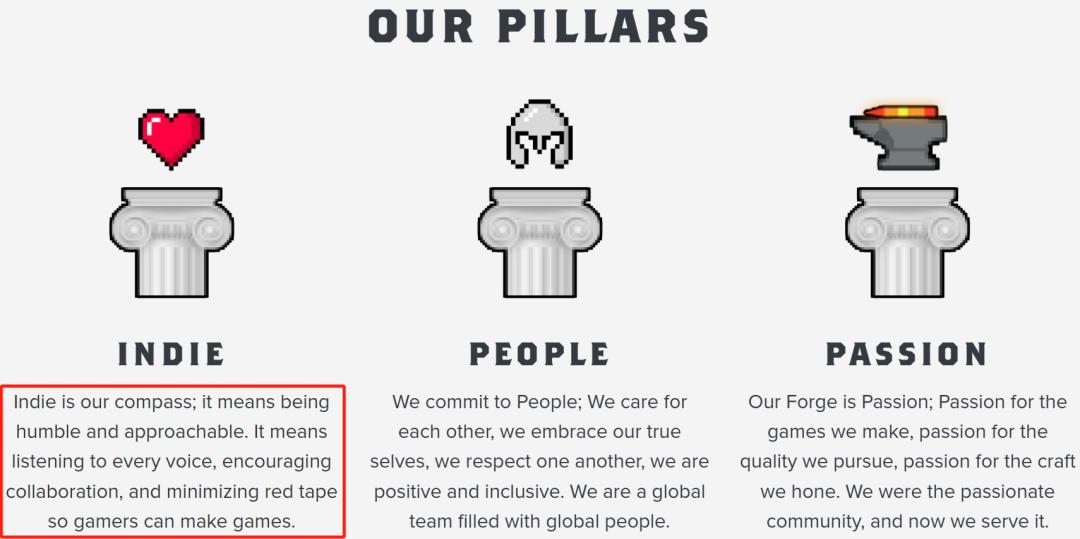 時至今日,indie(獨立)也仍是EHG官網羅列的核心精神之一。他們對indie的解釋是:抱着謙虛的心,傾聽每個聲音;鼓勵合作;減少那些繁文縟節的規則限制,讓玩家也可以做遊戲。
