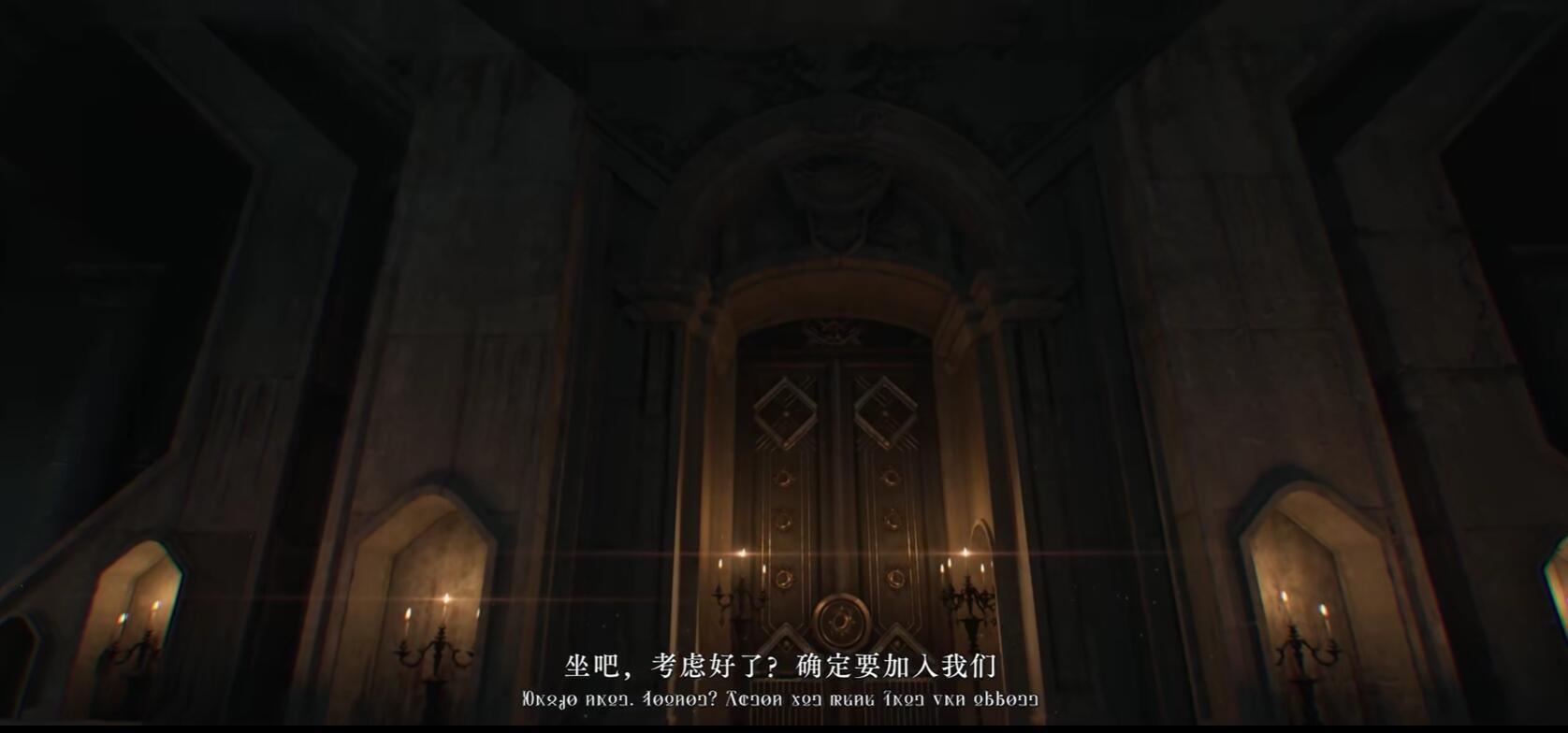 視頻雖然沒有出現人物,但是展示了小說裏的關鍵場景,如查尼斯門,占卜俱樂部,黑荊棘安保公司等,最引人注意的就是遊戲除了中文字幕外還專門製作了小說虛構的魯恩語字幕。