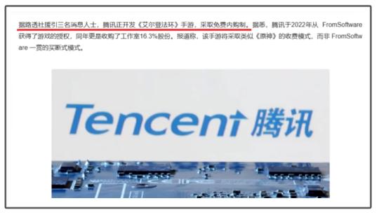 另一條則是埋了兩年的暗線,入股了FS社這麼久,騰訊的《艾爾登法環》手遊也終於露出了風聲。