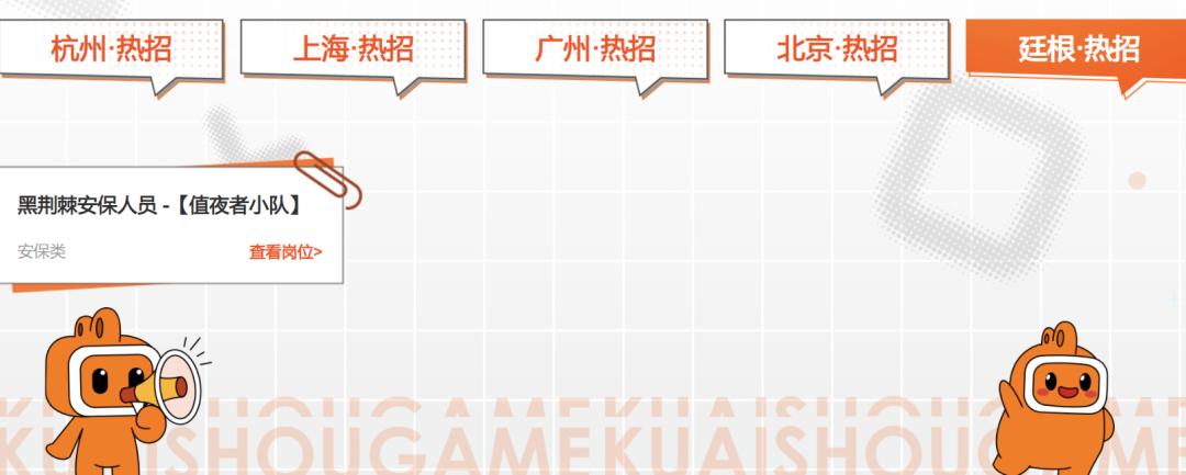 3月1日,快手旗下自研遊戲廠牌彈指宇宙,在其官網上發佈了一則崗位招聘,崗位名稱爲黑荊棘安保人員 -【值夜者小隊】,而職位描述則跟小說一樣魔幻。