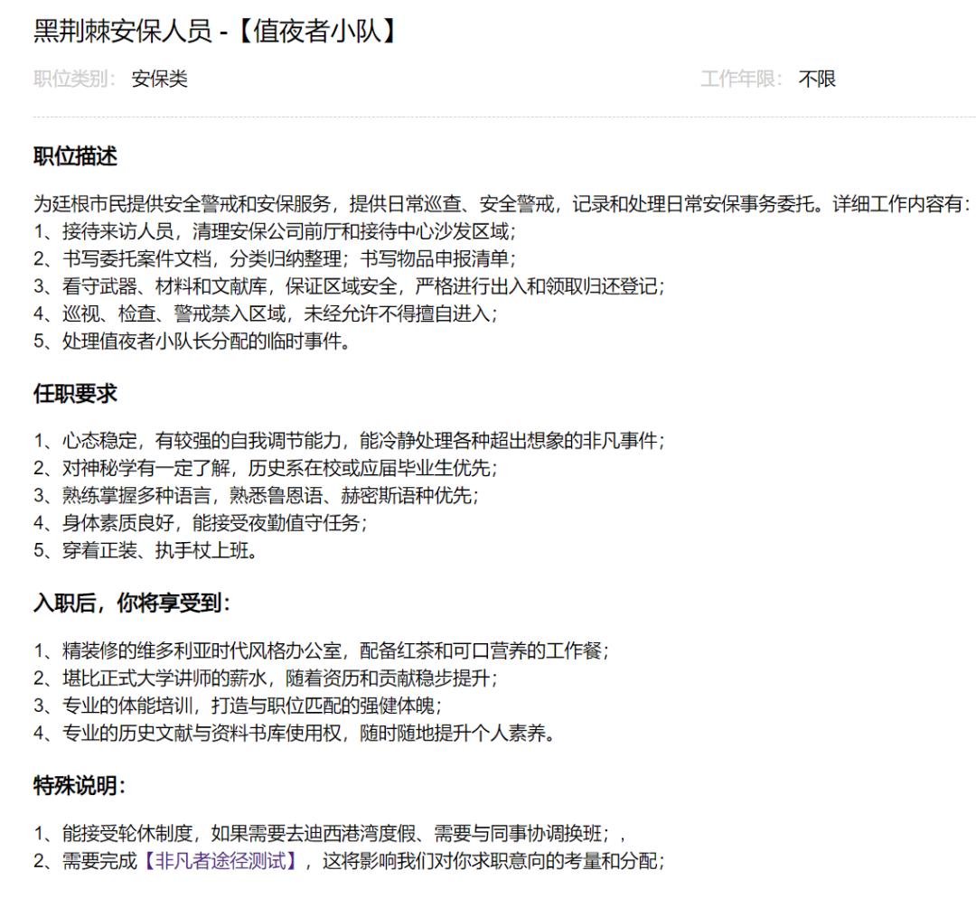 總之,如果有興趣的玩家,可以點擊「閱讀原文」,試試應聘一下這個遊戲圈最高薪的「保安」職位。