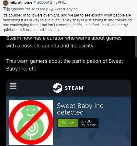 最近在歐美遊戲圈,一個名叫Sweet Baby Inc的組織,正被無數憤怒的玩家們圍攻。Sweet Baby是一家專門服務於遊戲公司的公司,成立於2018年,總部位於加拿大蒙特利爾。按照官網的介紹,他們的使命“是講述更好、更具同理心的故事,同時使視頻遊戲行業多樣化和豐富。目標是讓遊戲對每個人來說都更有吸引力、更有趣、更有意義、更包容。”說白了,前面都是些公開場合的漂亮話,只看最後三個字“更包容”就行了。在很多國外玩家看來,這公司的主營業務,基本上就是給遊戲公司提供LGBT+的內容諮詢和優化服務。講得更簡單一點,就是教你如何在遊戲中塞入所謂的ZZZQ內容。Sweet Baby的官網上,顯示了不少他們參與過的遊戲項目,其中不乏《戰神:諸神黃昏》《漫威蜘蛛俠2》《自殺小隊》《心靈殺手2》之類的大作。歐美數得上的遊戲開發商中,Xbox遊戲工作室、EA、V社、聖莫妮卡工作室、2K、育碧、SE、華納兄弟遊戲、威世智等也均是Sweet Baby的客戶。關於Sweet Baby對這些遊戲做了什麼事,我們能從一段採訪中明確得知,《戰神5》根據北歐神話改編,原本是沒有安格博達這樣一位黑人女主角的,是Sweet Baby給聖莫妮卡提供建議,讓遊戲里加入了這個角色。當然,在如今的歐美遊戲行業,塞入ZZZQ元素已經成了所有大型遊戲的標配,遠不止Sweet Baby官網中展示的這些。BB姬暫時還沒有深入研究,也不敢保證Sweet Baby到底在推動ZZZQ氾濫的道路上起到了多少作用。不過有一點可以百分之百確定:越來越多的歐美玩家,已經對此忍無可忍,並開始將憤怒發泄在Sweet Baby身上。《FF7重生》這兩天發售後,海外也出現了很多諷刺的帖子,說這遊戲如果是歐美人做的,那麼蒂法和愛麗絲應該長成這樣。爲此,在剛剛過去的2月末,不滿Sweet Baby干擾遊戲行業的玩家Kabrutusrambo發起了一場反抗活動,他建立了一個Steam鑑賞家頁面,命名爲“Sweet Baby Inc detected”(檢測到Sweet Baby Inc)。顧名思義,這份名單旨在提醒玩家哪些遊戲引入了Sweet Baby的審查,全部都打上了不推薦,希望玩家抵制它們。你能看到很多老熟人,比如《刺客信條:英靈殿》《哥譚騎士》《自殺小隊:戰勝正義聯盟》等。本來只是玩家Kabrutusrambo的自發行爲,的確吸引了幾千名關注者。但這事引起了Sweet Baby多名員工的強烈不滿。比如該公司的顧問Maya Felix Kramer在X上連續發表十多篇帖子譴責,並轉發了一篇IGN的文章,暗示玩家集體抵制多元化,在一定程度上導致了最近的遊戲行業大裁員。另一位Sweet Baby的編劇Chris Kindred的言行更激烈,她呼籲粉絲攻擊活動組織者Kabrutusrambo,還貼出了Kabrutusrambo的個人Steam賬號。然而效果卻適得其反,Kabrutusrambo得到了X上玩家們的熱情支持,反而是Chris Kindred承受不了壓力刪除了所有推文,並將個人賬號和Sweet Baby的官方賬號全部鎖推。原本Kabrutusrambo建立的鑑賞家清單,在3月1日只有5000多人關注,然而Sweet Baby員工的攻擊與批評,反倒成爲了最好的宣傳。很多玩家反脣相譏,“感謝Sweet Baby讓我們知道了這份清單”。截止撰稿,短短4天時間裏,這份鑑賞家清單的關注數已經突破了14萬人,並且還在高速增長中。發起者Kabrutusrambo也感謝了玩家的支持,他表示:“夥計們,我幾乎忘了互聯網有多好玩,謝謝大家的留言和支持。讓我們把遊戲產業的鑰匙放交還回玩家手中。”