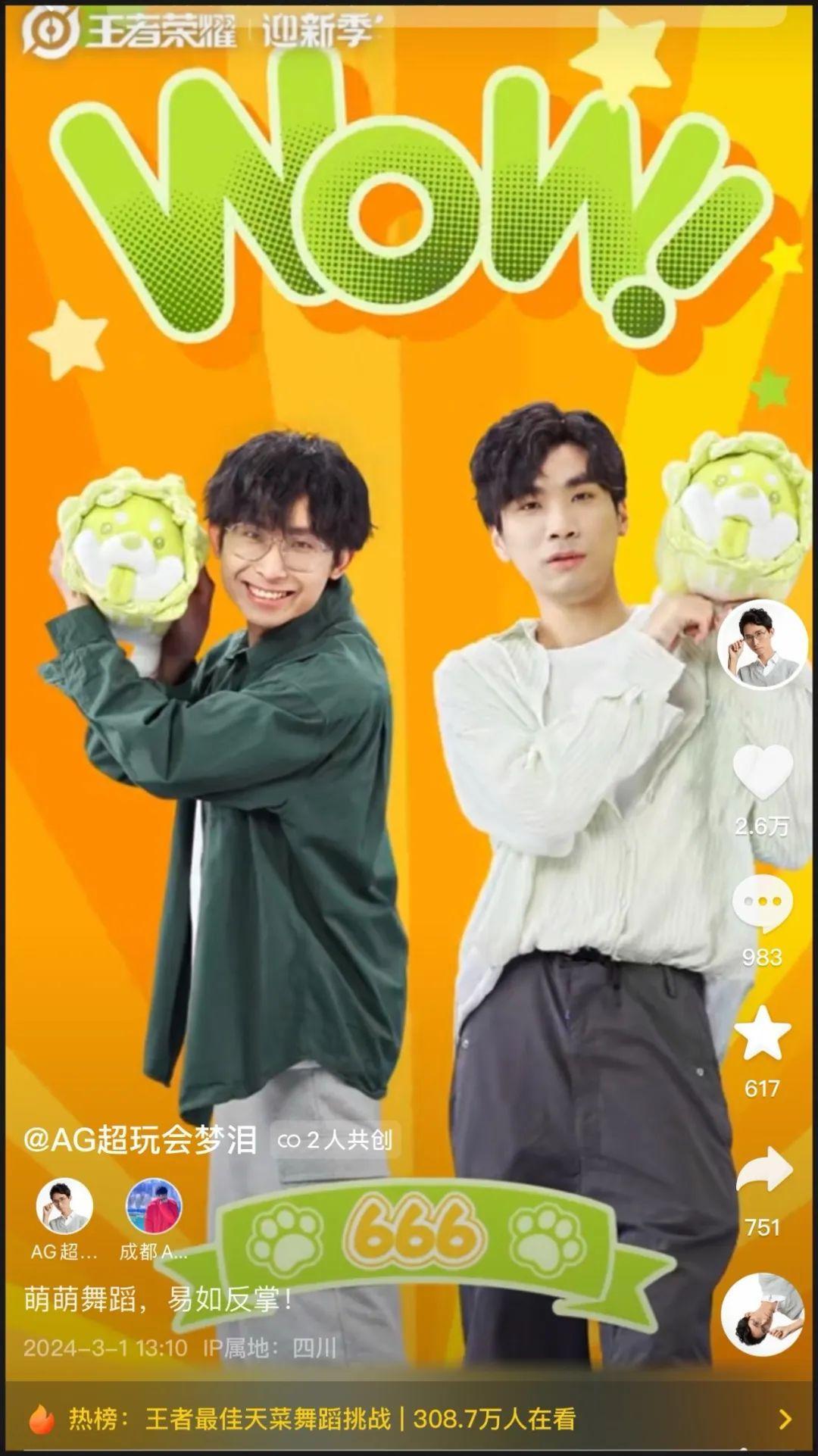 只看見夢淚、林甲楠在遊戲外整活搞怪,模仿起官方創作的“元芳魯班白菜狗天菜舞”,在視覺和聽覺上全方位轟擊你的大腦。