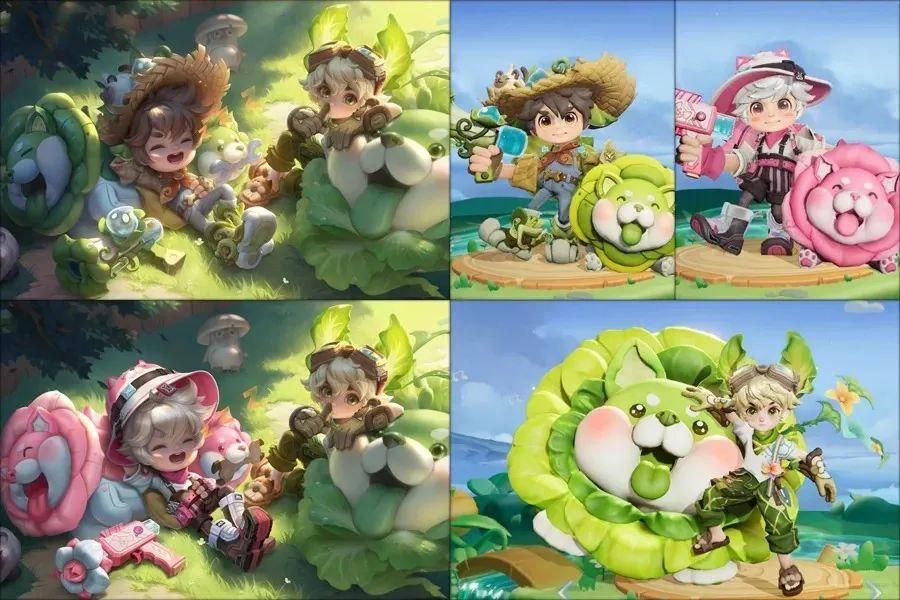 刷兵線刷野怪積累碎片,收集到一定數量完成變身,變成4種隨機的蔬菜精靈:白菜狗、辣椒雞、檸檬鯨和香菇鵝。