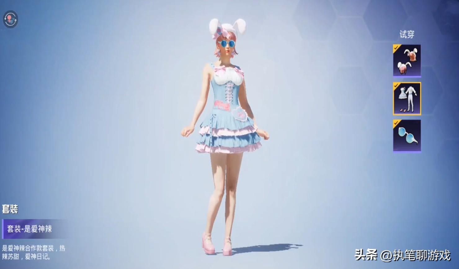 由於僅有這麼一套衣服,而且還是紫色等級的普通套裝,連角色都不是,所以大概率會以小轉盤或點券直兌的方式登場。考慮到最近的《和平精英》出現了一系列點券直兌類型的新軍需,所以天哥覺得“是愛神辣”大概率會是小轉盤。