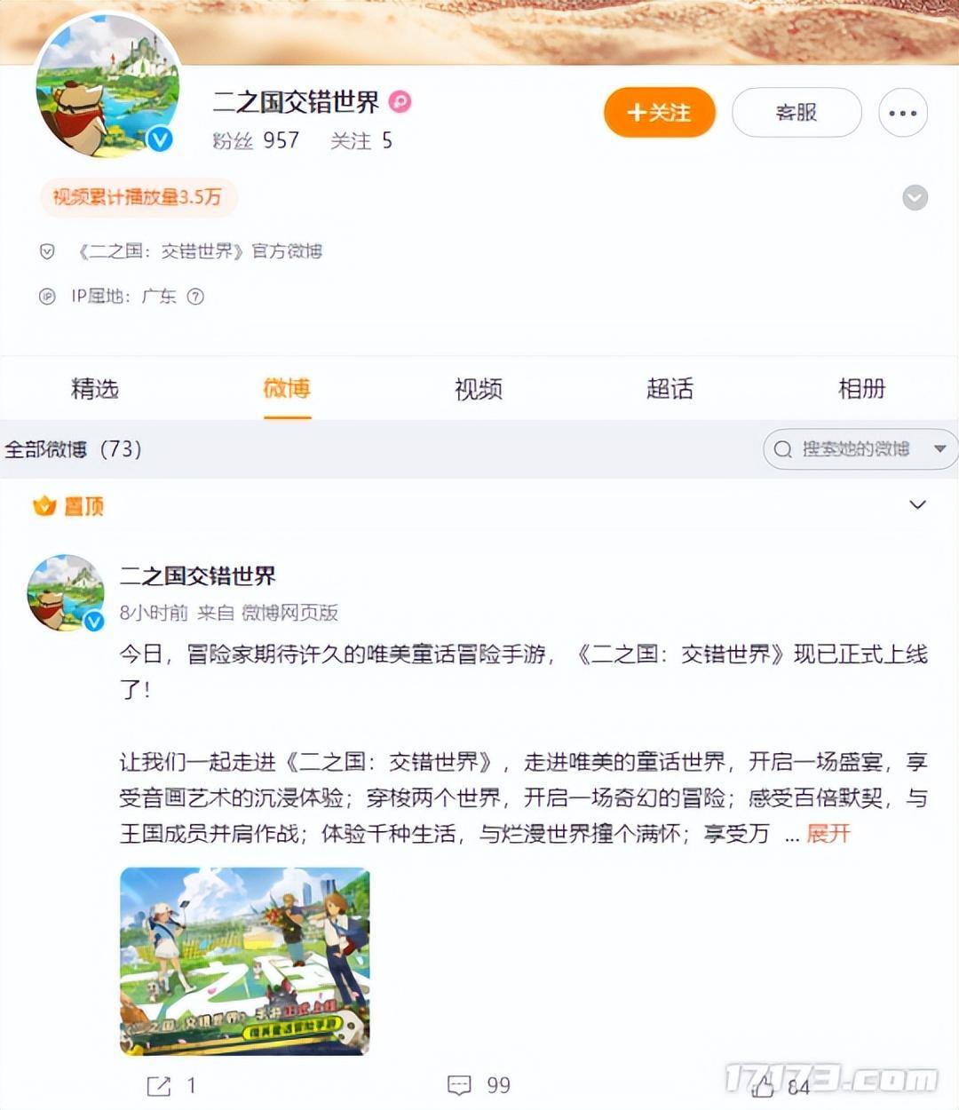 遊戲在2月28日上線後整體熱度很難讓人相信這是一款騰訊代理的遊戲,官方發佈的上線視頻時隔一天僅有6000播放,官方微博更是僅有不到1000關注,上線公告也僅有99條評論。