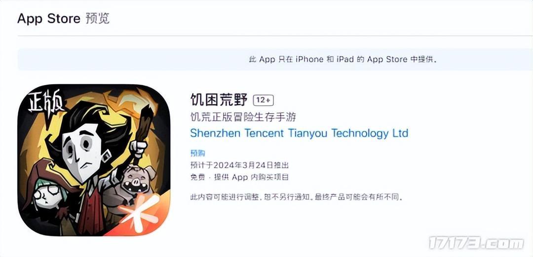 遊戲最早於2023年12月獲得國服版號,當時的遊戲名字爲《饑荒:新家園》。隨後在今年的1月遊戲改名爲《飢困荒野》。根據App Store商店顯示的消息來看,遊戲預計將於3月24日上線。