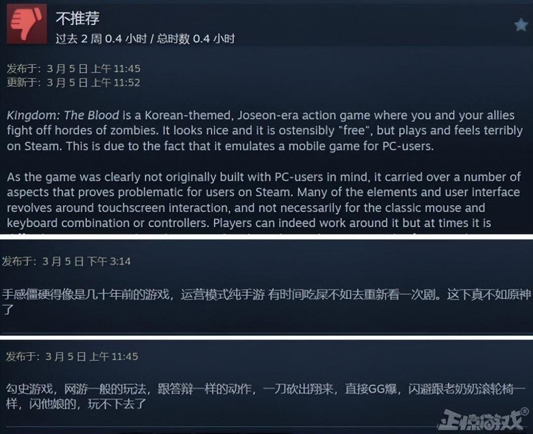雖然劇集評價很高,但是就像是很多影視改編的遊戲一樣,《李屍朝鮮:血脈》也順順利利的翻車了,目前steam口碑“特別差評“,好評率只有19%,被吐槽遊戲動作僵硬,BUG多,內容單一。