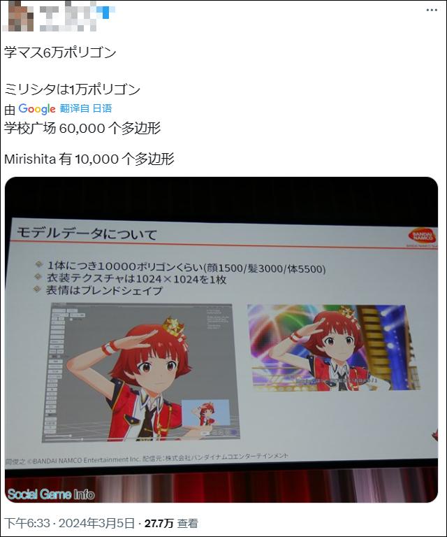 拋開PV展示的養成玩法,《學園偶像大師》的“高精度模型(高模)”在日本本土也引起了一定的討論。