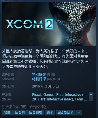 經典回合制戰術,貼臉賭命戰旗遊戲《XCOM2》正在打折,折後9.5元。