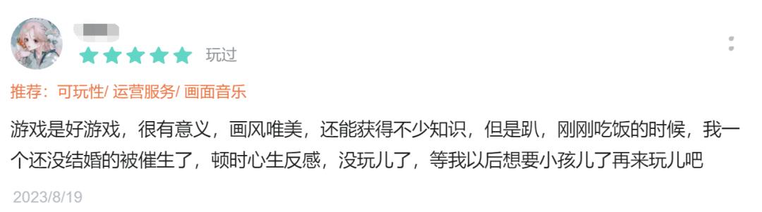 當然,相比結婚生育這種人生大事,目前我更好奇:對於一款遊戲來說,持續的負反饋是否會令其失去核心樂趣?畢竟遊戲就是拿來爽的,這種憋屈體驗真的能讓用戶玩下去嗎?