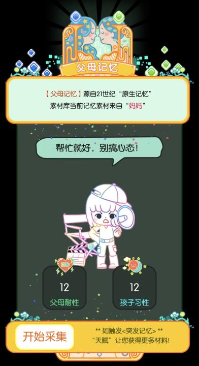 首先《彩虹記憶》的具體敘事設計呈現碎片化,玩家能同時看到父母和孩子三方在生活、工作和養育過程中的日常瑣事和心理變化。