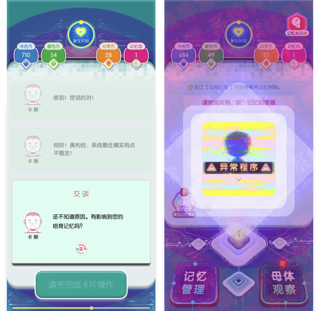 而玩家身爲記憶工程師,需要跟人工智能合作,蒐集父親、母親、嬰兒三方的記憶碎片,完成該嬰兒0-12歲的養育——這有點像《黑客帝國》中,人工智能給人類塑造虛擬記憶的橋段。
