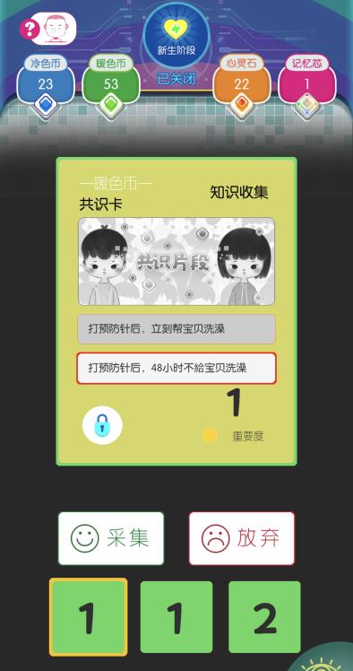 而《彩虹記憶》雖然也有多結局、多周目和不同職業的設計,但他的美術、玩法、內容都集中在了呈現日常故事上——換句話說,製作團隊的設計思路,就是想通過模擬養成的形式,給玩家講述養育嬰兒會遇到什麼難題,這些難題可能帶來哪些結果和心理變化。