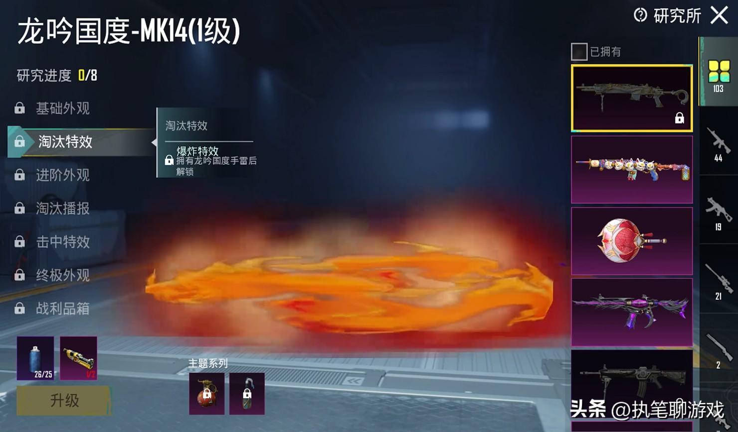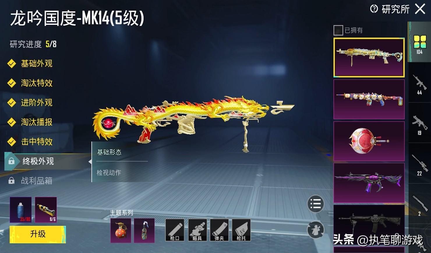 如圖所示,這是來自PubgM裏的升級槍MK14龍吟國度,在終極外觀的功能裏,就可以看到基礎狀態與檢視動作。