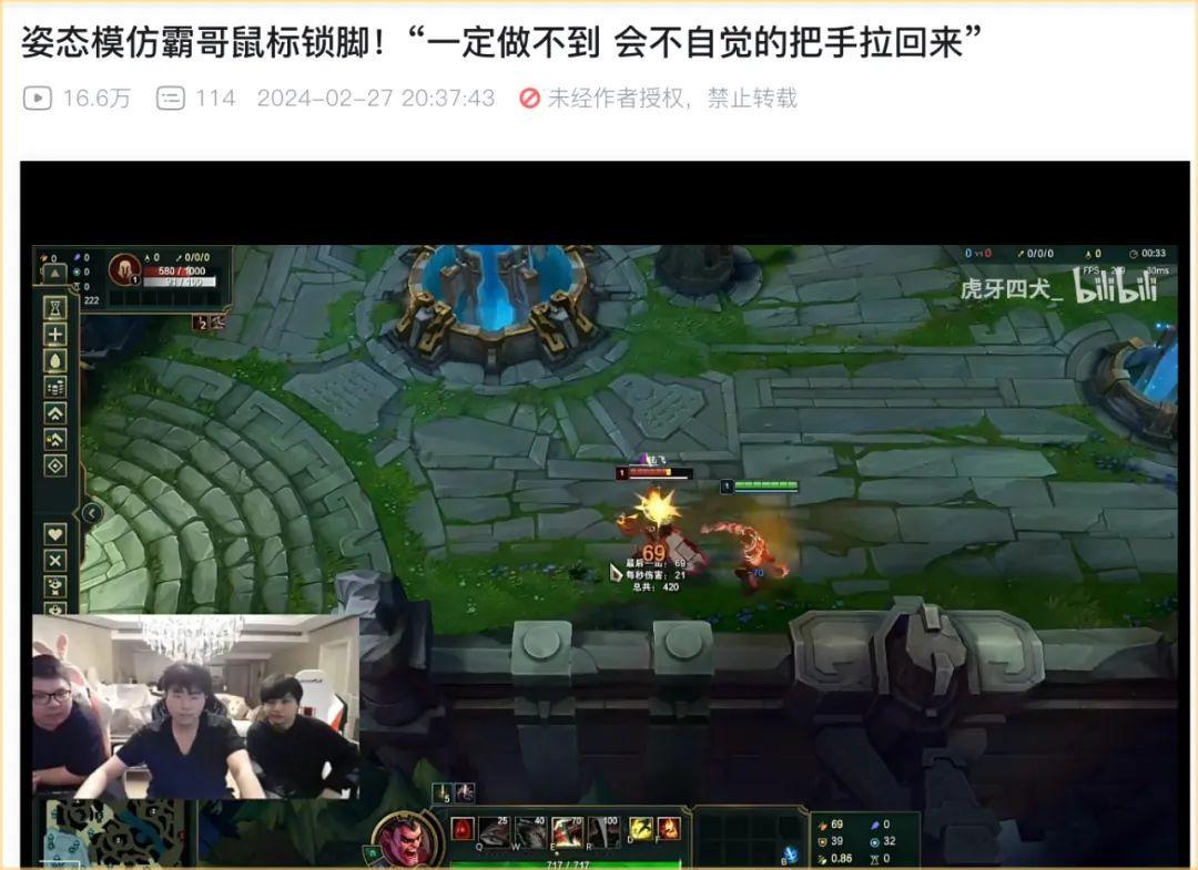 2月27日,姿態直播在訓練模式模仿霸哥鼠標鎖腳,並表示:肯定做不到,會不自覺把手拉回來。