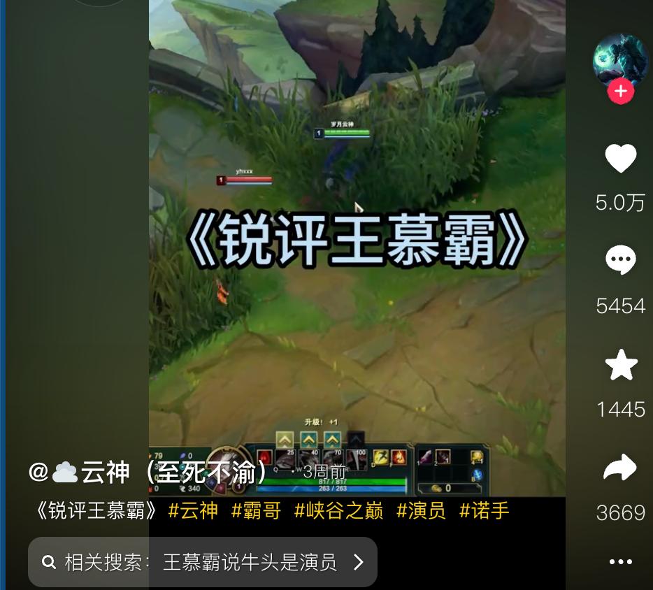 2月14日,抖音有一個叫“雲神”的主播,玩牛頭輸了以後被霸哥噴演員,於是跟水友們聊起前兩年霸哥一路連勝上峽谷王者的事情。