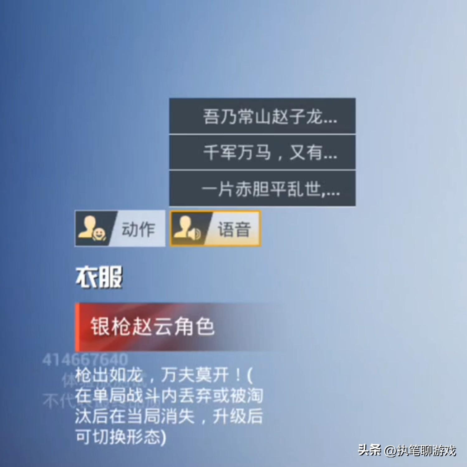然後是銀槍趙雲,同樣擁有專屬動作與語音,並且也是具備3條語音,第一條“吾乃常山趙子龍”,是不是覺得相當親切呢?嘿,這種三國元素的角色,自然會頗受男孩子們的青睞。