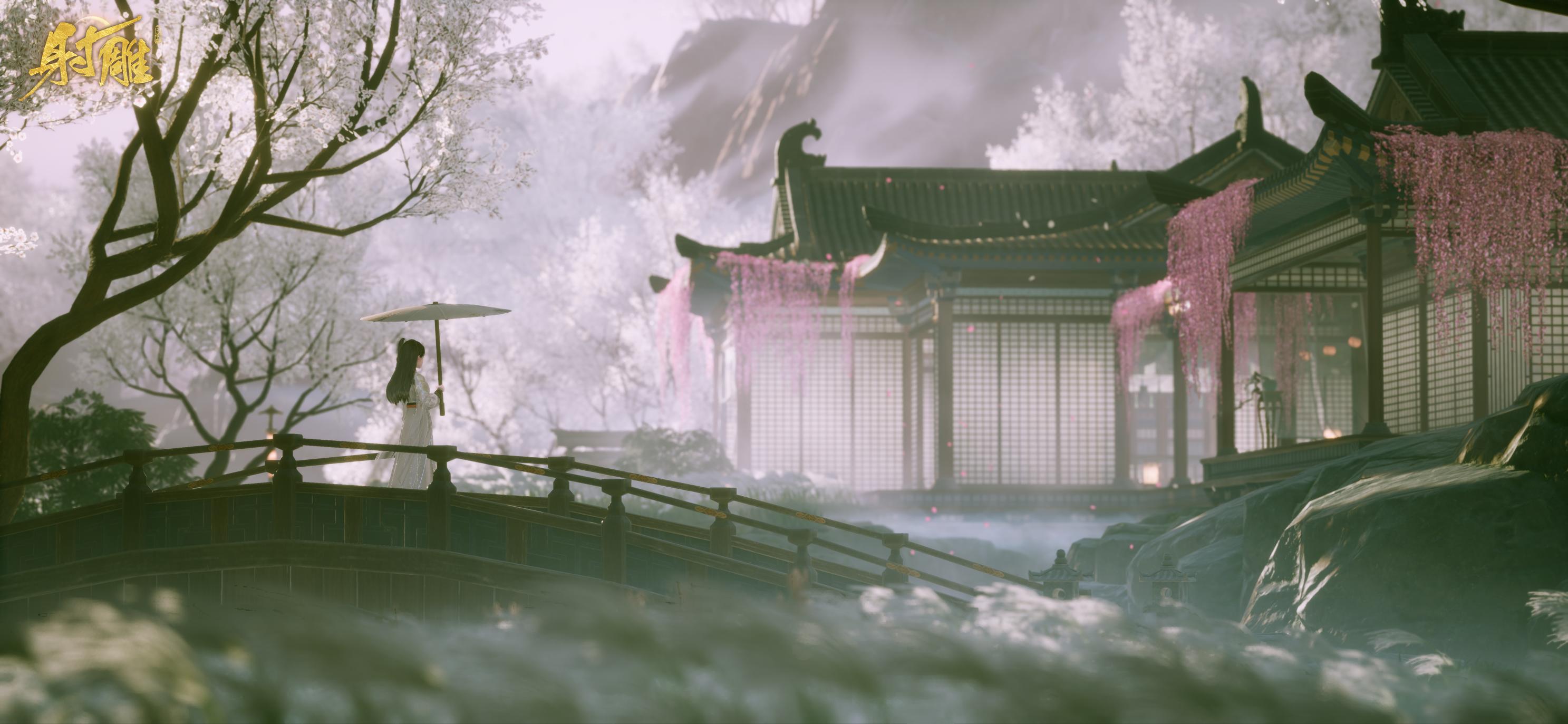 比如與大多數寫實風格的武俠MMO相比,《射鵰》這種注重寫意留白的插畫、風景,能帶給人耳目一新的視覺體驗;遊戲內的BGM、NPC唱響的宋詞哩曲,也是能讓人駐足聆聽的聽覺享受。