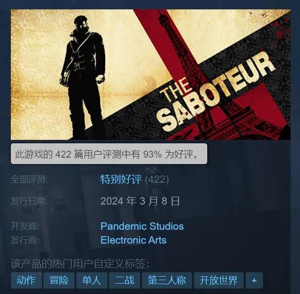 老遊戲《破壞者》意外在Steam上線了,而且在打折,這遊戲是當初沙盒遊戲浪潮中的一員,賣得不是太好,但其實挺有特色的。遊戲裏,玩家要扮演的是二戰時期,巴黎地下反抗組織的成員,而且因爲遊戲走的是寫實路線,所以開放世界還原的就是當時的巴黎。