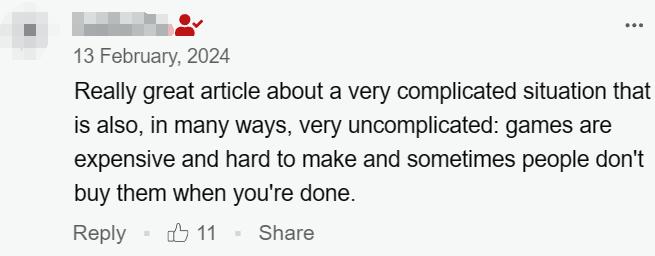 其實供需雙方立場不同,本身就難以達成100%的信任、理解。畢竟,玩家作爲消費端,是爲產品付費,而非爲同情廠商付費。這其實反映出了一個問題: