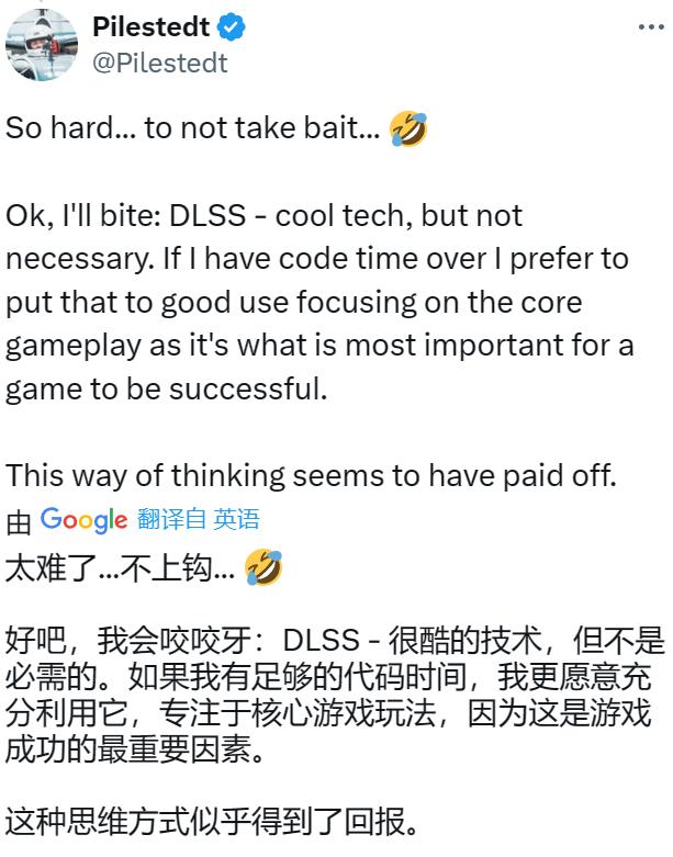 前不久被玩家噴“連DLSS/FSR技術都沒有,這不是當今遊戲標配嗎?”後,《地獄潛兵2》總監就回應道:“DLSS技術很酷,但沒有必要。”因爲在他們看來,美術包裝是次要的,遊戲玩法纔是核心。