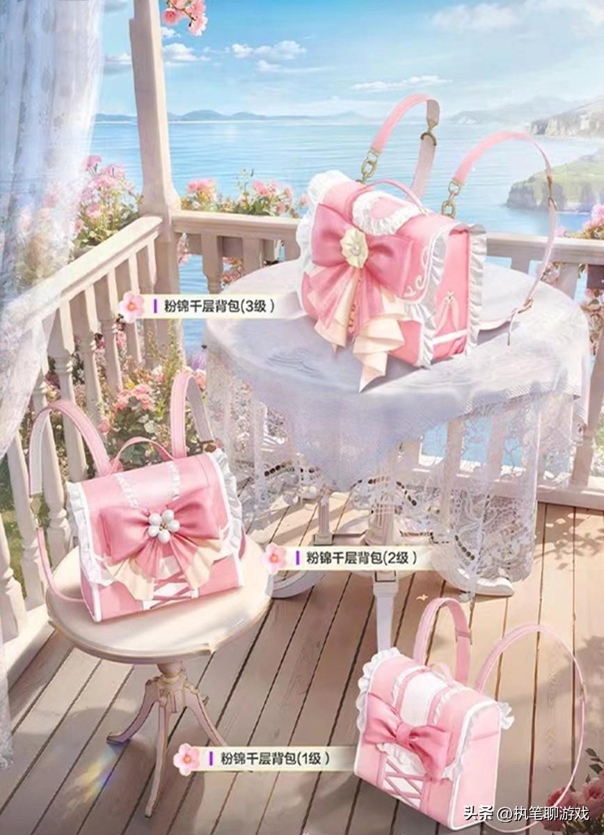 前文提到,粉錦千層雖然是小轉盤,但皮膚種類相當齊全,其中的頭盔、揹包採用新建模,同樣還是粉裏粉氣的顏色搭配,也缺少不了蝴蝶結的點綴,對於這種細節以及顏色搭配來講,天哥這樣的老玩家只能感慨萬千,覺得黔驢技窮的光子很難設計出讓玩家們滿意的皮膚。
