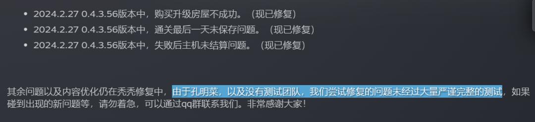當我們撰稿時,遊戲的開發者之一熊熊也正在B站進行直播。最近越來越多的獨立遊戲開發者會使用直播改代碼來推廣自己的作品,但不同的是,在熊熊的直播間裏最醒目的一行字寫的是:“實力有限,代碼能不改就不改,改了BUG更多,能跑就行。”