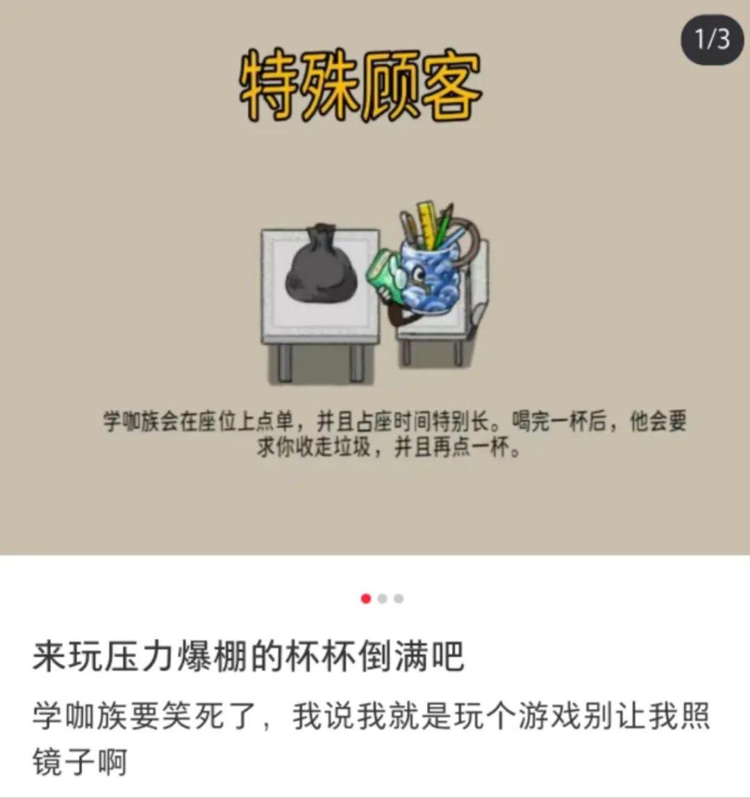所以《杯杯倒滿》並不像它的品類看起來那麼休閒,反而是一款用忙到麻木的迫真“上班”體驗感來營造某些抖M愛好者青睞的爽感,用網友的一句話評價是:“很喜歡這種豬腦過載的感覺”。