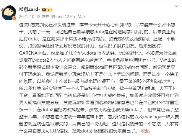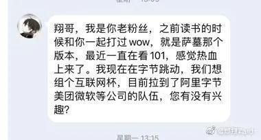 隨後,一些玩家從101裏找回了當年打刀塔的熱血。有玩傢俬信Zard想請他組織一個由互聯網大廠員工參與的DOTA互聯網杯比賽,第一屆互聯網杯就這麼開始了。